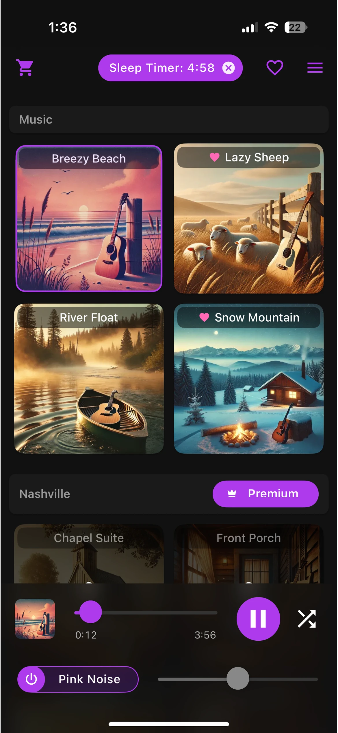 Experience the sleepy sounds of Nashville artist Nathan James Allen and find your perfect mix by adding in noise or nature sounds. Continue your journey with us as we constantly add new sleepy content to explore.